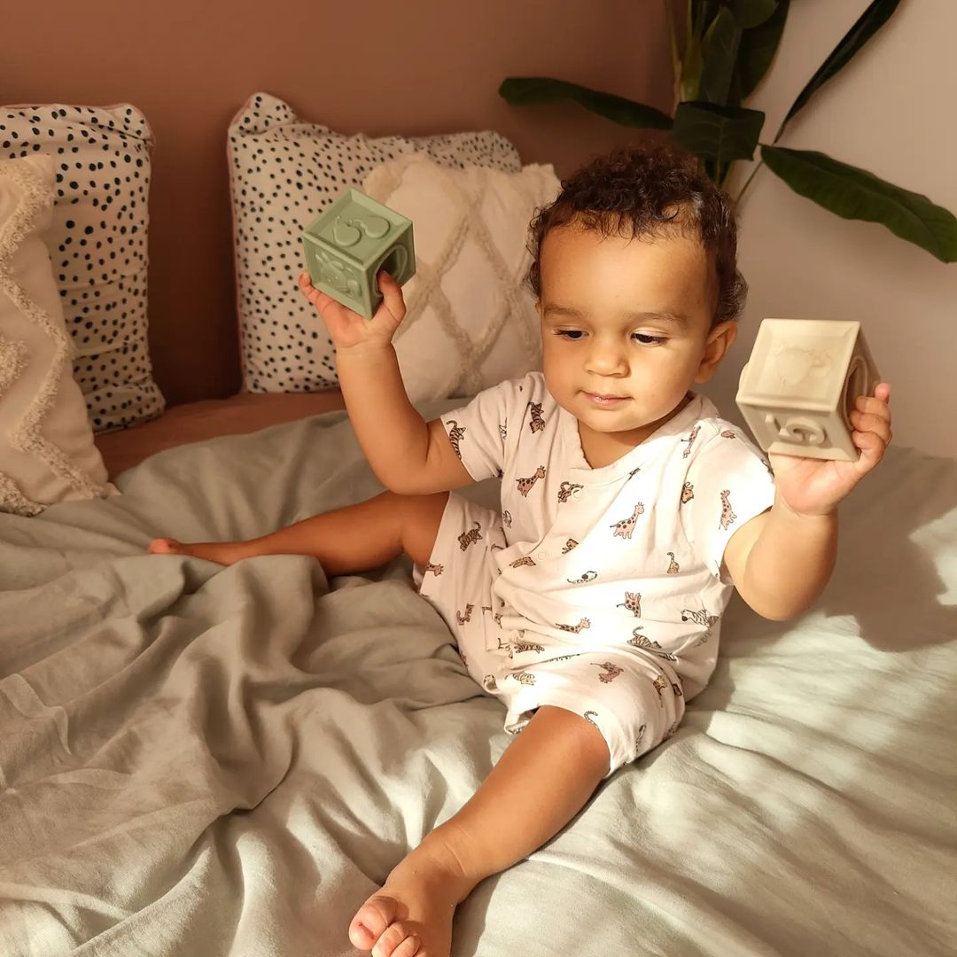 Petit moment d’éveil avec ces cubes sensoriels qu’Eslem adore.