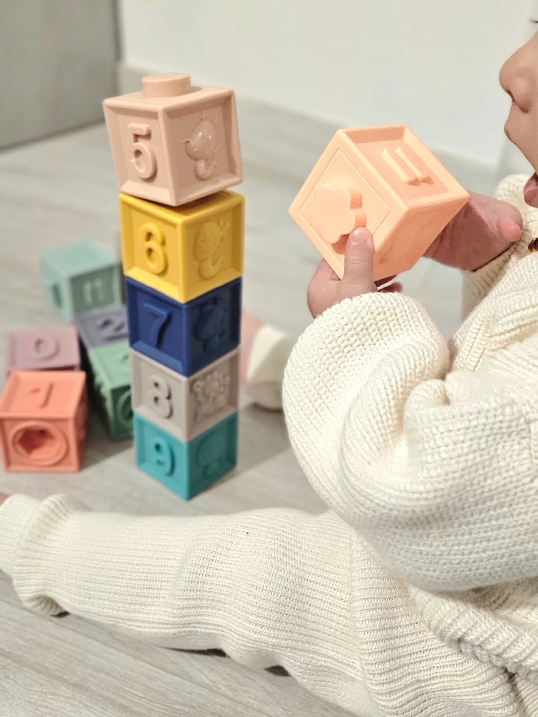 Des couleurs douces, des formes à toucher, à empiler, à mordre et découvrir les chiffres tout en jouant ☺️